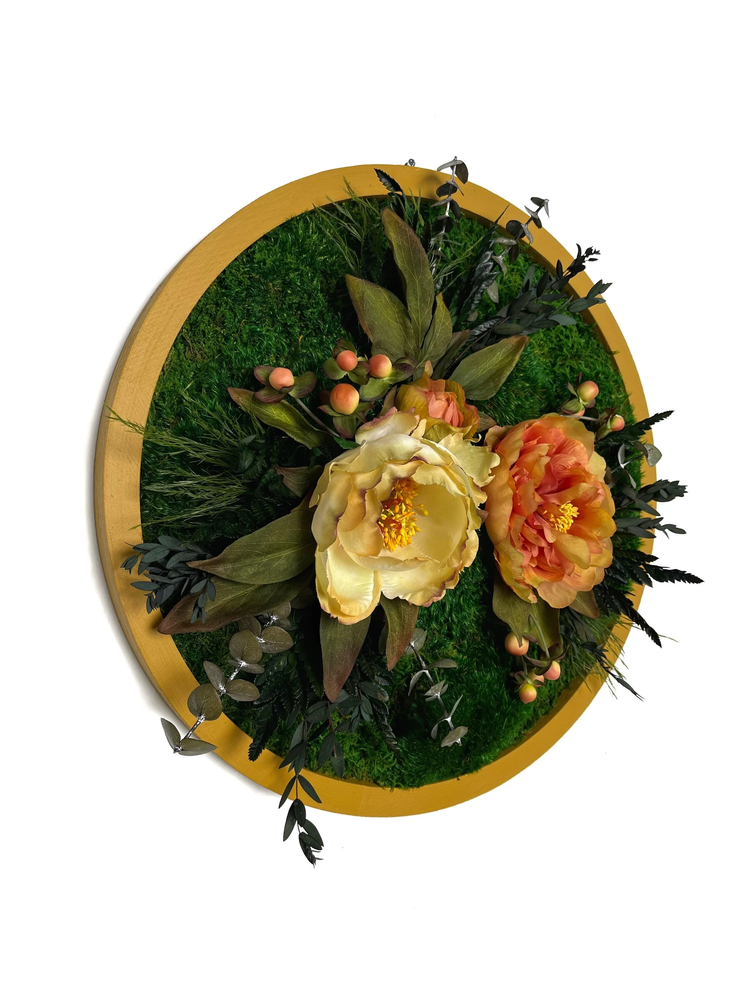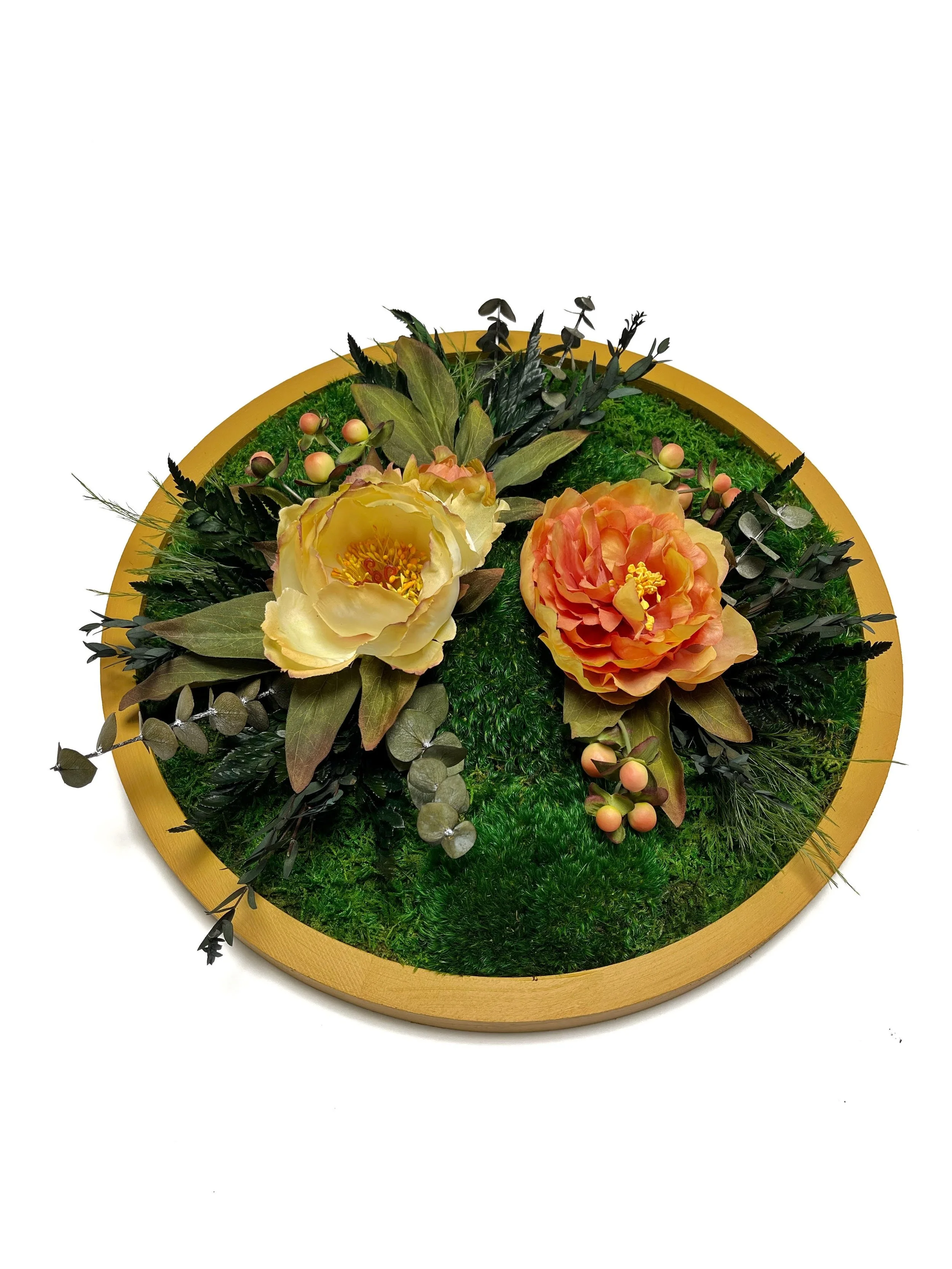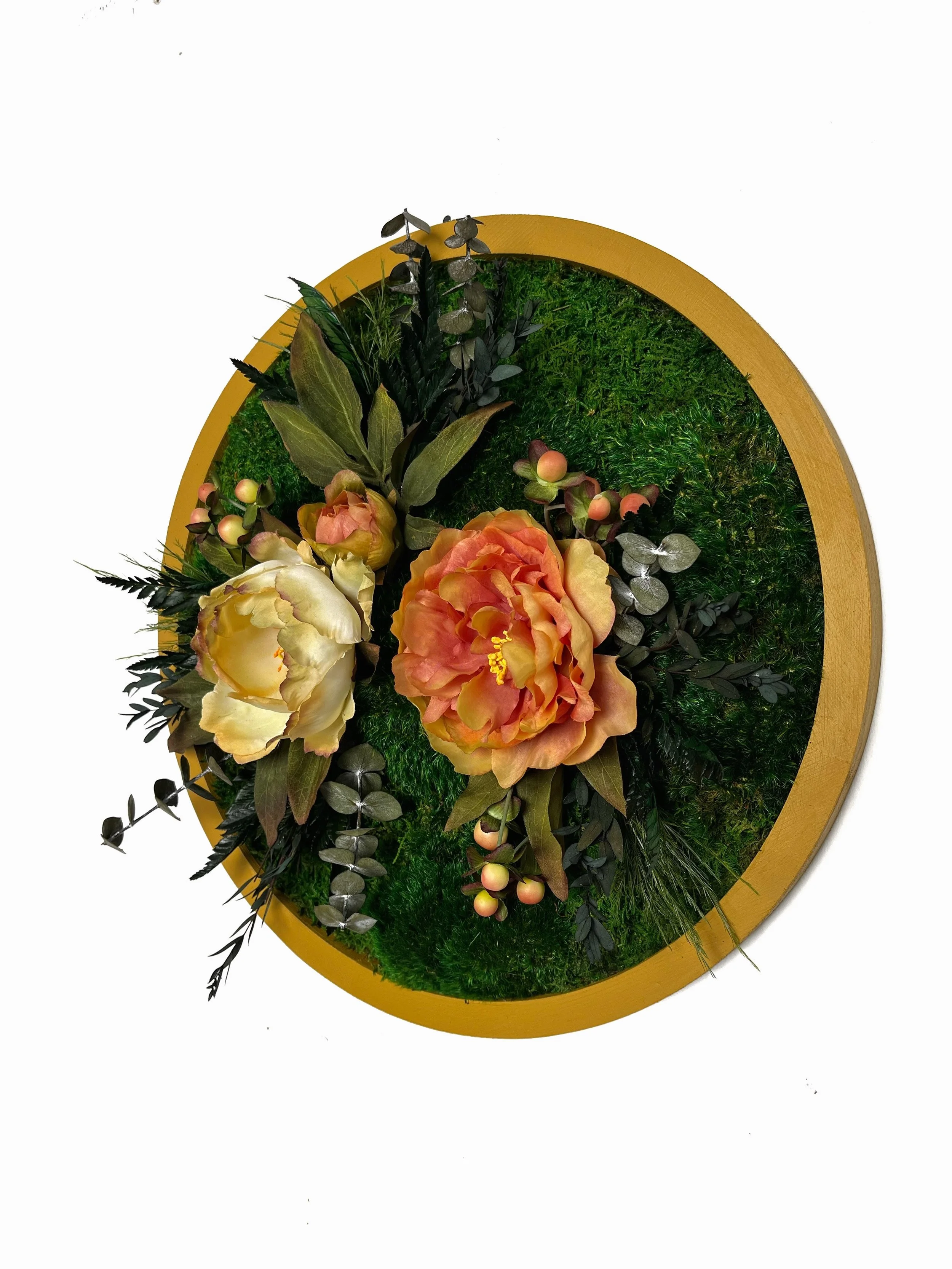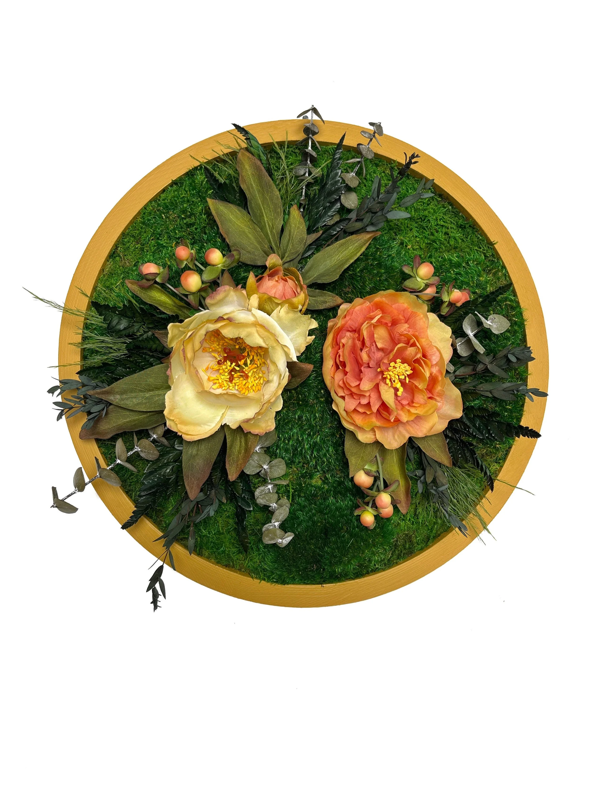 Shop Kate the Earthling › Floral Moss Circle Image 1 of 4 Image 2 of 4 Image 3 of 4 Image 4 of 4 Floral Moss Circle $150.00 Painted wood circular frame with preserved mosses, ferns and silk flowers.Approx. 15” Diameter Add To Cart Added! Painted wood circular frame with preserved mosses, ferns and silk flowers.Approx. 15” Diameter Reviews Reviewer Name Review Date Star Rating Description Posted on Etsy Product Show More